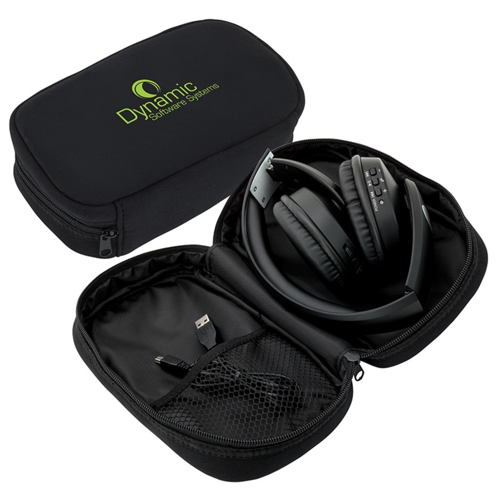 Over-the-ear Bluetooth padded and adjustable headphones are compatible with most Bluetooth-enabled smartphones, tablets, laptops and desktop computers, and connect wirelessly up to 30 feet away. The integrated microphone allows you to make hands-free calls. The rechargeable, lithium-ion battery will fully charge in about 2 hours and delivers over 10 hours of wireless play. Other features include volume control / navigation buttons, on/off switch, Bluetooth version 2.1 and full A2DP support. Includes a USB charging cable and zippered neoprene carrying case with mesh accessory pocket.